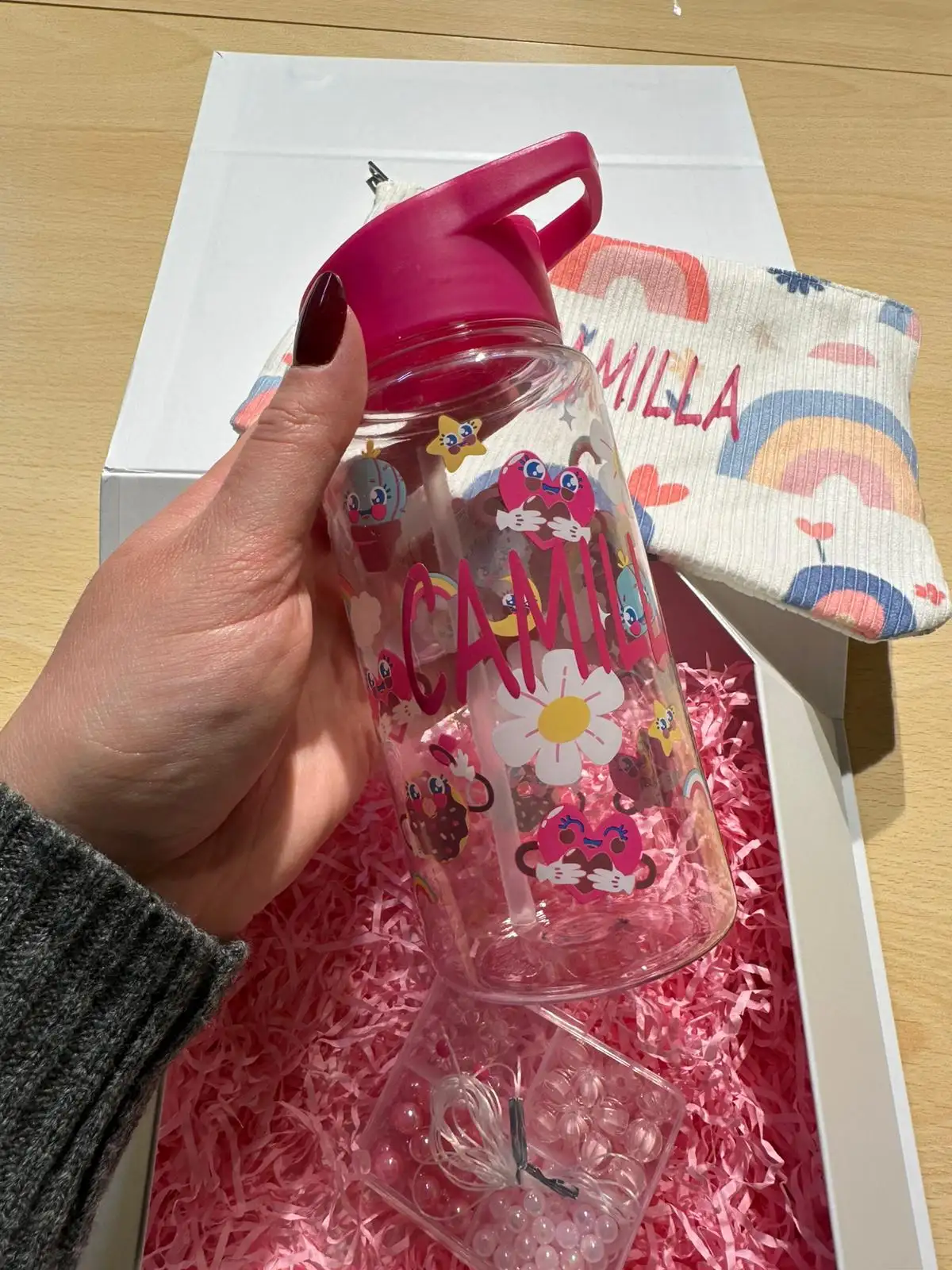 👉 Opzione alternativa: su richiesta puoi togliere il set braccialetti e sostituirlo con una spazzola personalizzata, ideale per le bimbe che amano pettinarsi e curare i capelli.