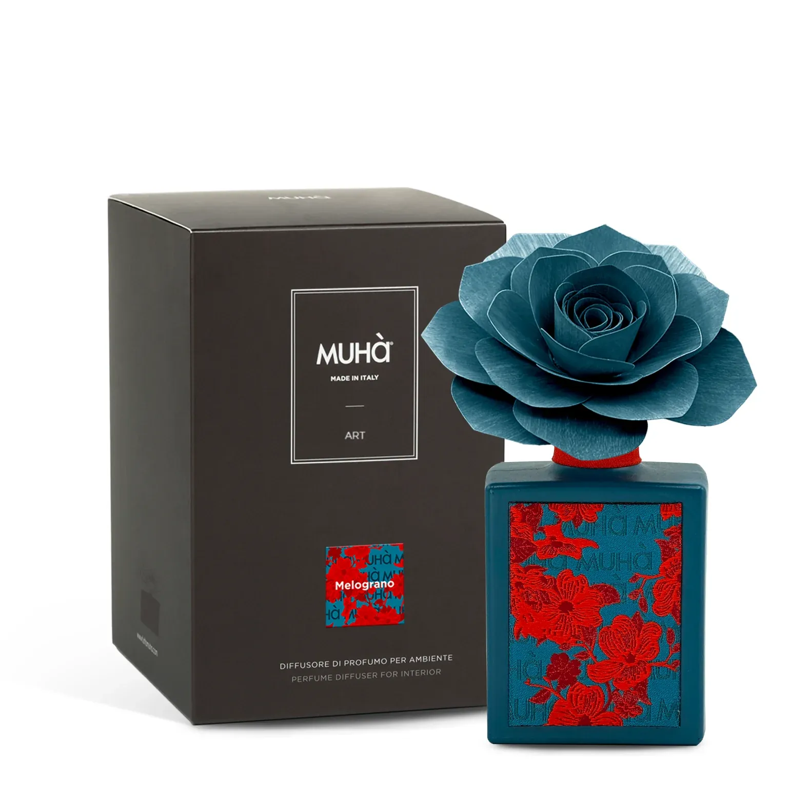 Eleva l’estetica del tuo ambiente con il Diffusore Art Melograno, un vero e proprio oggetto da collezione. La raffinata bottiglia in vetro verniciato e l’esclusiva etichetta tessuta in jacquard lo rendono un complemento d’arredo senza pari. È sormontato da un diffusore a forma di fiore in legno di betulla, realizzato completamente a mano, emblema del design Made in Italy.