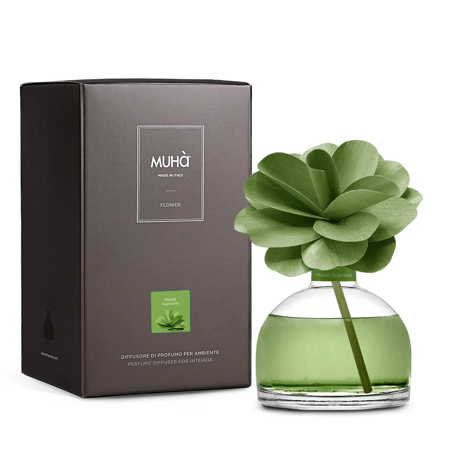 Desideri un’atmosfera seducente, irresistibile e avvolgente? Il nostro profumatore Mosto Supremo Γ¨ una dichiarazione di stile olfattivo. Γ presentato in una raffinata bottiglia di vetro, sormontata da un diffusore a forma di fiore in legno di betulla, realizzato a mano. Un simbolo di design unico, completamente Made in Italy.