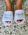 Le personalizzazioni sulle ciabattine e sulle calze invece vengono applicate con materiale adesivo, perfetto per superfici morbide e irregolari.